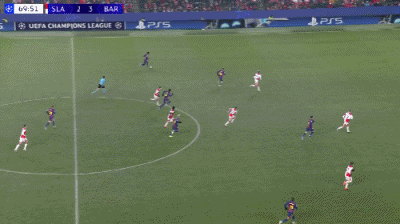 第34分钟,德容直塞,费尔明小角度抽射破门,巴萨1-1布拉格斯拉维亚