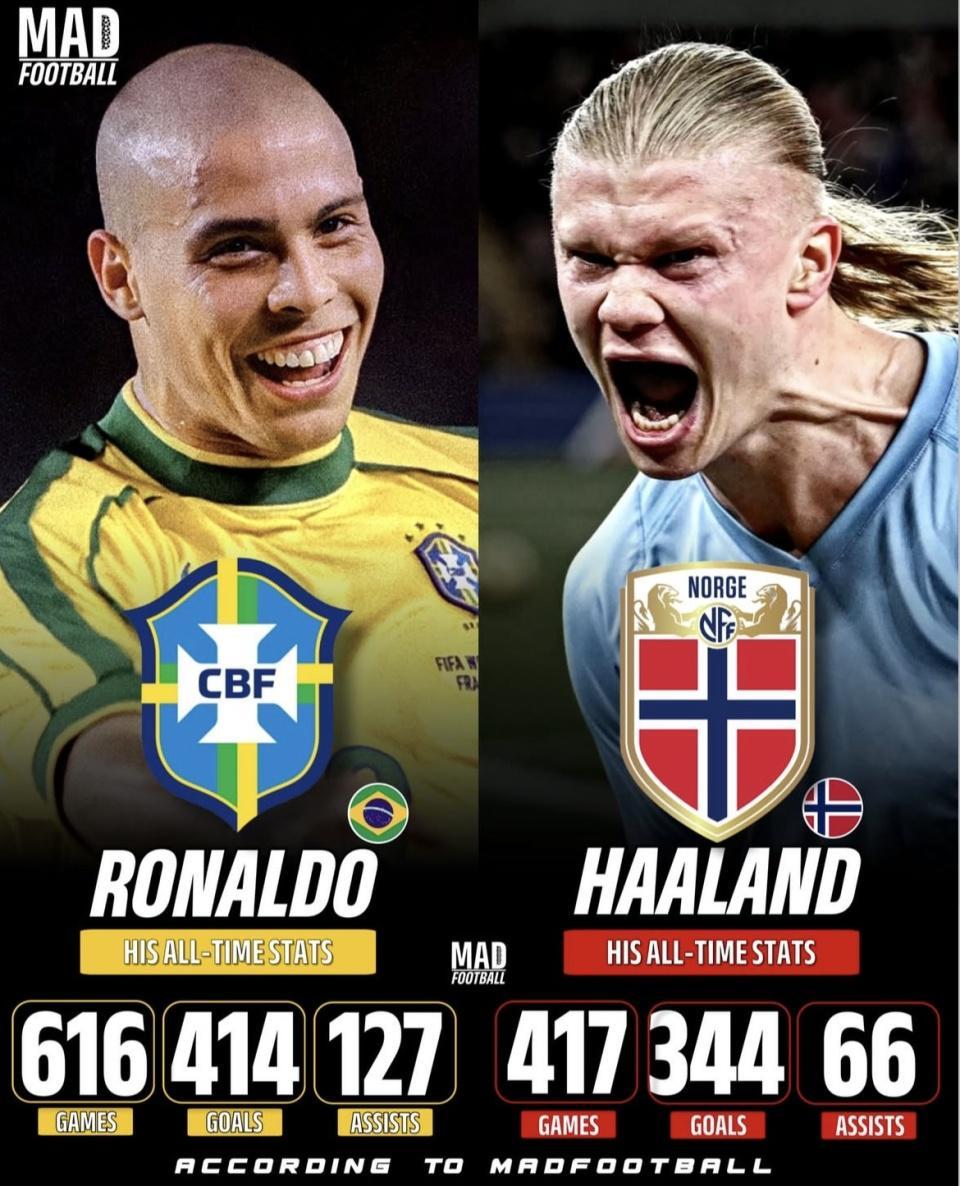 国家队硬荣誉 + 世界级个人荣誉的历史地位:罗纳尔多有世界杯冠军这种“顶格筹码”,哈兰德要完全覆盖这部分,难度非常大,更多取决于挪威能否在大赛周期里真正冲到顶层舞台。